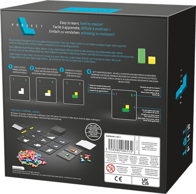 Project L is a fast-paced, tile-matching brain burner with triple-layer 3D puzzles and lovely acrylic pieces. Challenge your friends to a game of simple design but intricate gameplay that makes a lasting impression! The core of the game lies in using your pieces to complete puzzles. Starting with just two basic pieces, you use three actions every turn to develop a powerful engine. With more pieces of various types, you can efficiently complete even the most difficult puzzles. The puzzles you complete award you points or new pieces to further fuel your engine. Can you outsmart your opponents?