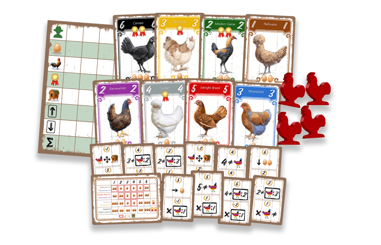 Elke ronde speel je een hen uit je hand in een poging om een harmonieus erf met meerdere rassen tot stand te brengen. De regels om kaarten te leggen zijn relatief eenvoudig, maar de uitdaging ligt in het vormen van grote groepen hennen van hetzelfde ras.