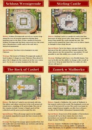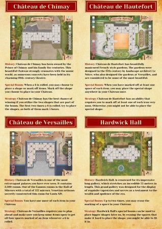 In Château, ben jij de architect van een prachtig historisch meesterwerk. Spelers bouwen gelijktijdig aan de plattegrond van hun château door vormen op hun spelersbord te plaatsen. Iedere speler heeft een eigen kasteel, met een speciale bonus om van te profiteren. De eerste speler die alle vakjes in zijn château heeft gemarkeerd, wint het spel!